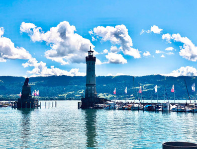Im Grunde trifft die Titelzeile wohl auf so ziemlich alle Orte am Bodensee zu: sie vermitteln einem alle dieses gewisse Gefühl von Urlaub, indem sie das See-'Flair', das man z. B. mit dem Comer See oder Gardasee verbindet, mit deutscher Tradition und Architektur vereinen. Das Interessante an Lindau am Bodensee ist, dass, wie der Name erraten lässt, die Lindau Insel, also die Altstadt, tatsächlich eine Insel ist. Diese ist über eine Brücke einfach zu Fuss, via Fahrrad oder mit dem Auto erreichbar. Die Hafeneinfahrt ist aus allen Richtungen dank ihrer einzigartigen Architektur gut erkennbar: auf der einen Seite ragt der Neue Lindauer Leuchtturm 36m über dem Wasser hinaus, ihm gegenüber steht eine massive Löwenplastik stolze sechs Meter hoch als Zeichen der Zugehörigkeit Lindaus zum Freistaat Bayern.