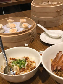 2) DIN TAI FUNG ist eine taiwanesische Restaurantkette (wir waren in der in der Shopping Mall im Marina Bay Sands), die mit einem Michelin Stern ausgezeichnet wurde. Man kann hier keinen Tisch im Voraus reservieren, sondern muss bei Ankunft einen QR Code scannen, die Anzahl der Gäste eingeben, und erhält dann ein ständiges Update, den wievielten Platz in der Schlange man gerade einnimmt. Wir haben die Zwischenzeit genutzt, das Einkaufszentrum zu verlassen und draussen an der Marina Bay zu spazieren. Nach 45 Minuten war unser Tisch frei und wir bekamen die Speisekarte nebst Bestellzettel. Puh, wo soll man da anfangen? Um bloss nichts zu verpassen, haben wir deutlich mehr Gerichte bestellt, als man zu zweit braucht (und aufgegessen :). Alles war unglaublich lecker, aber vor allem die allseits lobgepriesenen Dim Sum (Teigtäschchen gefüllt mit einem Hackbällchen und klarer Brühe) waren zum niederknien.