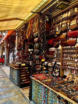 If you're interested in shopping, Izmir might just be the place for you. The city appears to be one huge commercial centre, with literally hundreds of bridal shops, furniture outlets, clothes shops, the ever present fake designer bags/clothes stalls and of course the traditional bazaar . The latter is a great place to stock up on spices, eat tons of delicoius baklava, have turkish coffee in one of the many coffee shops, and buy beautiful souvenirs. I was particularly taken with one tiny leather handcraft shop where the shop owner was making handbags, purses and all kinds of other nick nacks while I watched.